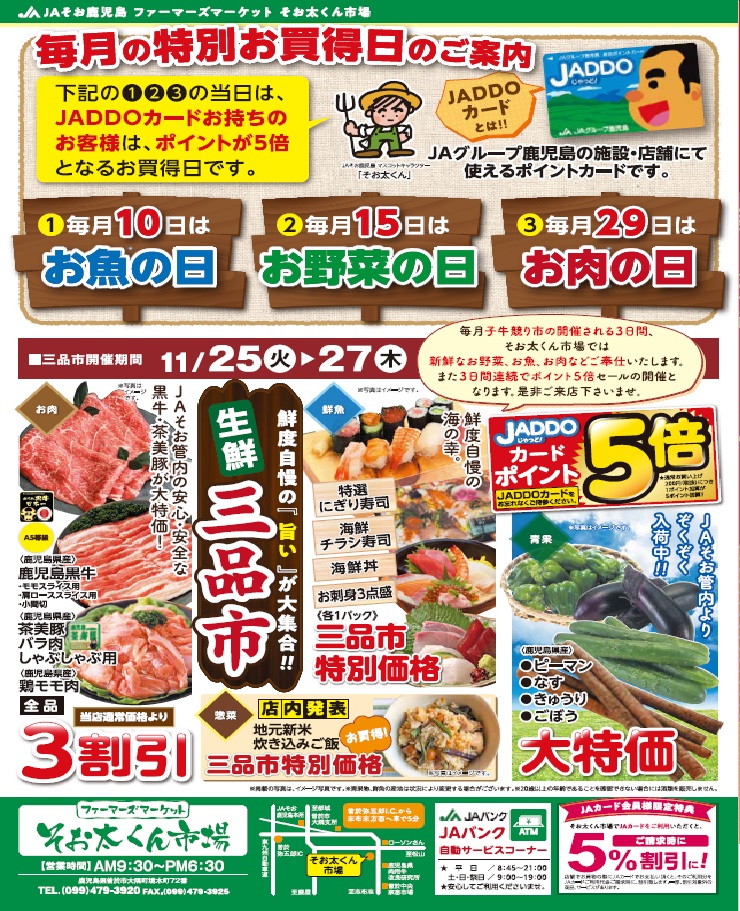 〇JAそお鹿児島農産部より「そお太くん通信11月号」のお知らせです。