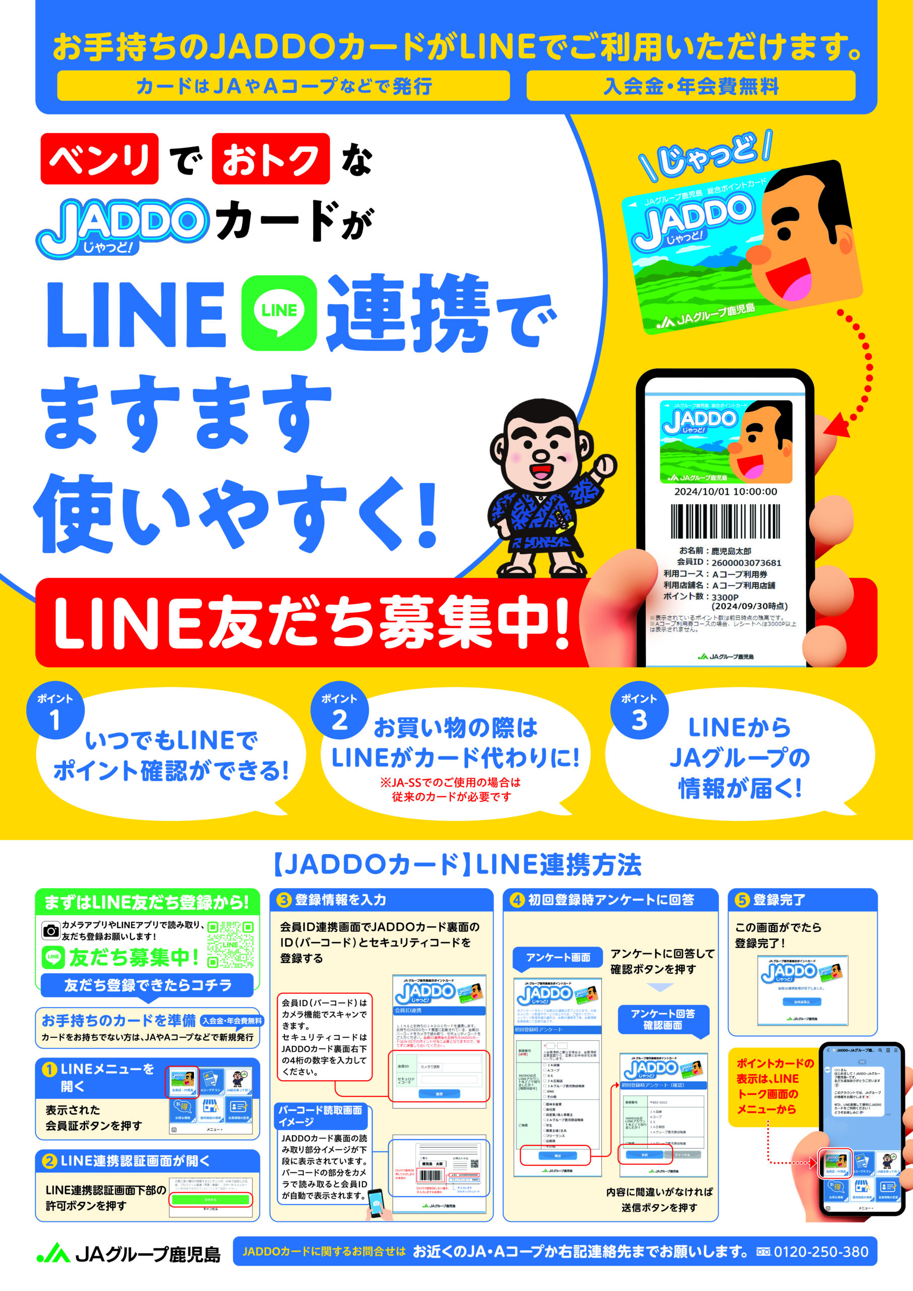 お持ちのJADDOカードをLINEと連携してご利用いただけます!