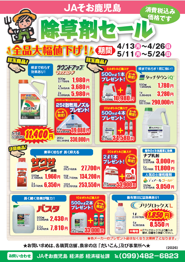 JAそお鹿児島では除草剤セールを行います!
